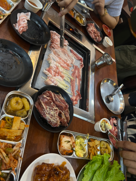 Ang mga samgyup at side dishes ay sobrang sarap at siguradong nakakabusog. 🥩🥬